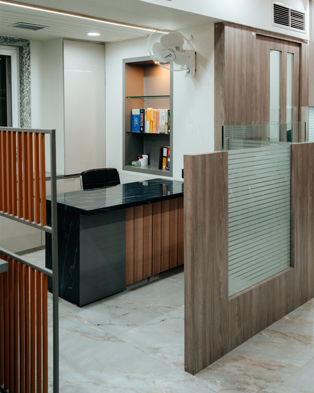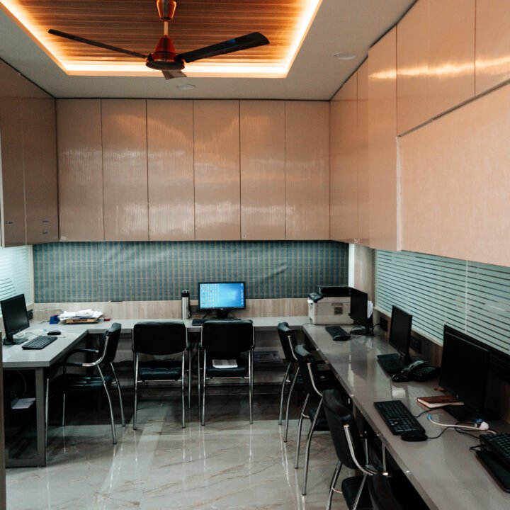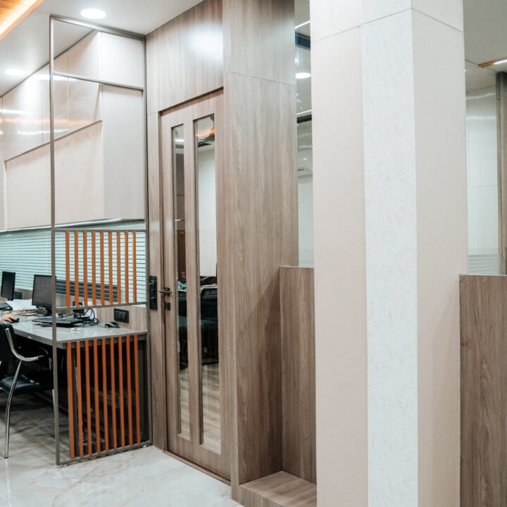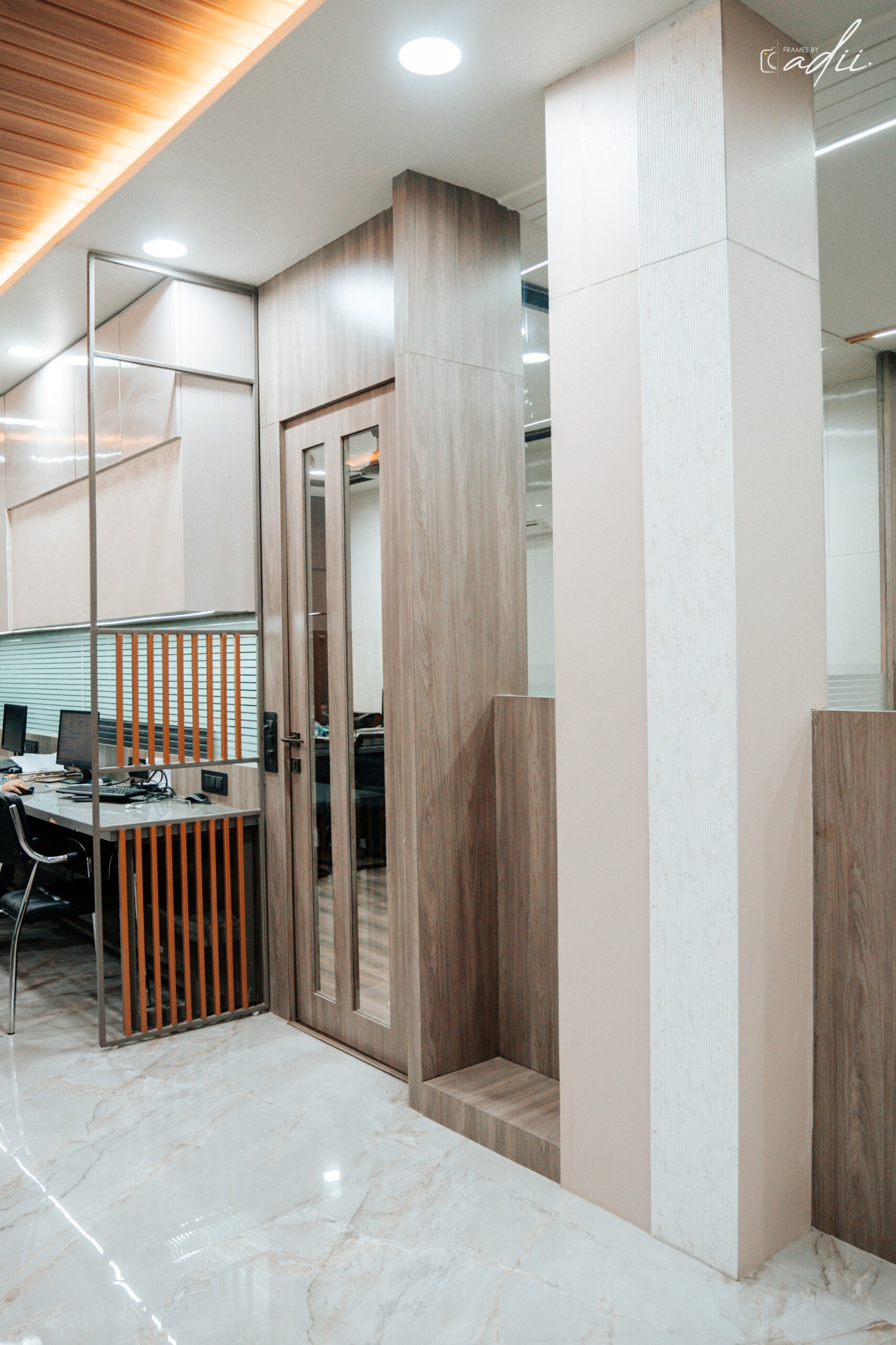 A contemporary corporate interior done on clean lines and uncluttered spaces defining this sleek corporate office, where form meets function in a harmonious blend of simplicity and professionalism.