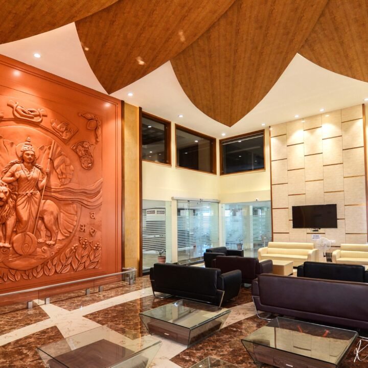 One of our most appreciated and celebrated projects is the BJP headquarters building in Jabalpur. The reason why we are so proud of this particular project is that the exterior and the interior was completed in a record 8 months time, for which we were felicitated by the current Chief Minister Shivraj Singh Chauhan.