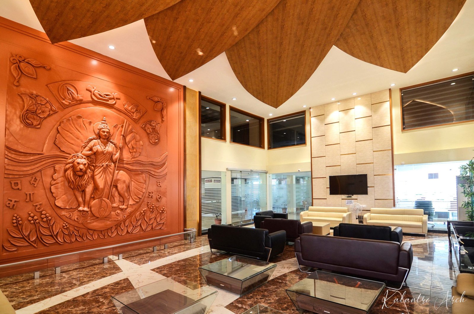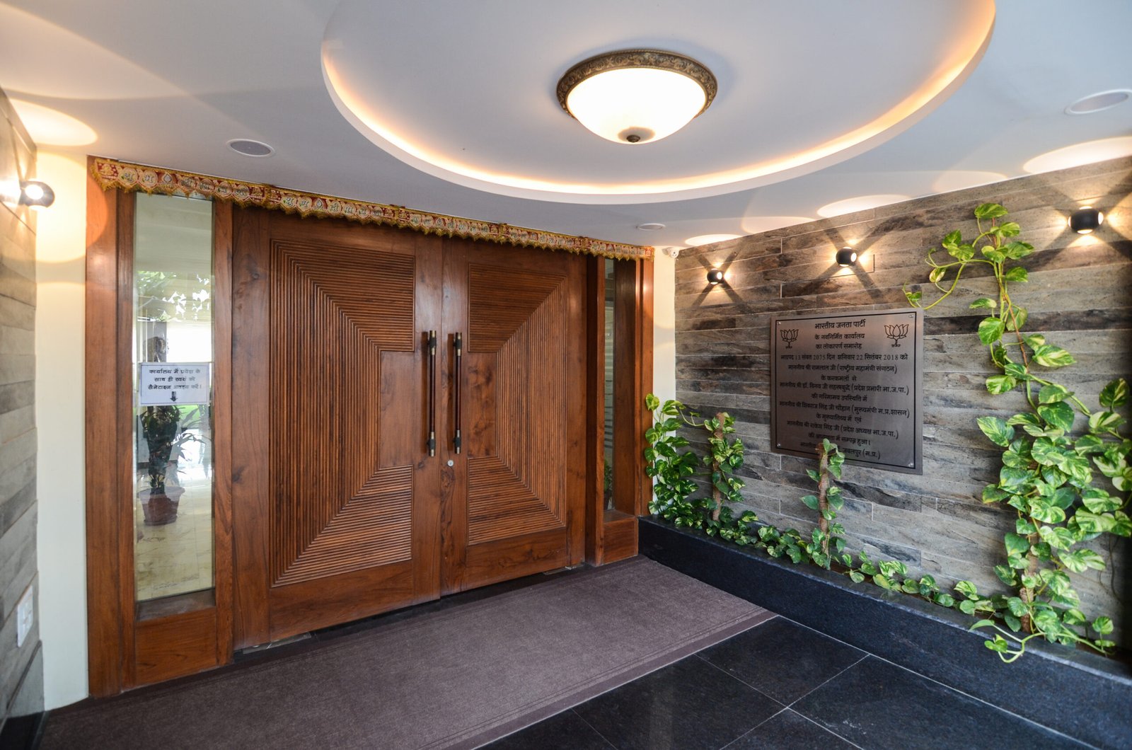 The interiors of the BJP headquarters projected the political party’s agenda which was a new India through new ideologies and shear transparency & trust in the system; which was rightfully represented by the building standing tall as an emblem of trust and safety.
