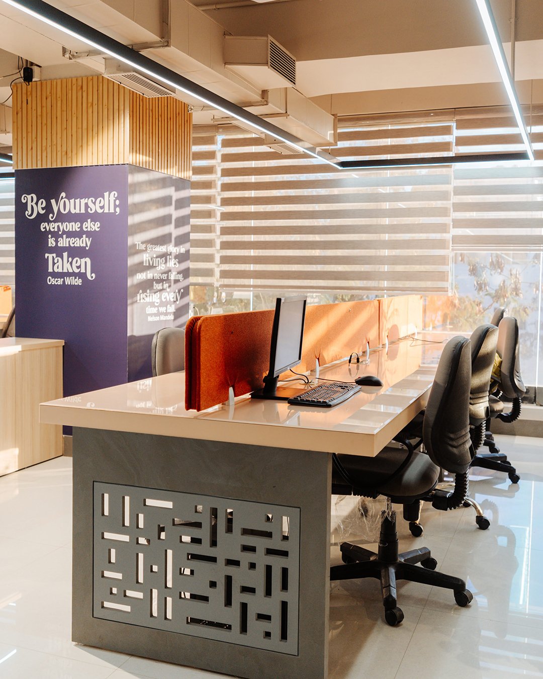 The vision was to craft a workspace that balances professionalism and playfulness, appealing to a young, dynamic team without compromising efficiency or sophistication. The space must encourages focus, collaboration, and creative thinking, while maintaining a sense of calm through minimal materiality and clutter-free aesthetics.